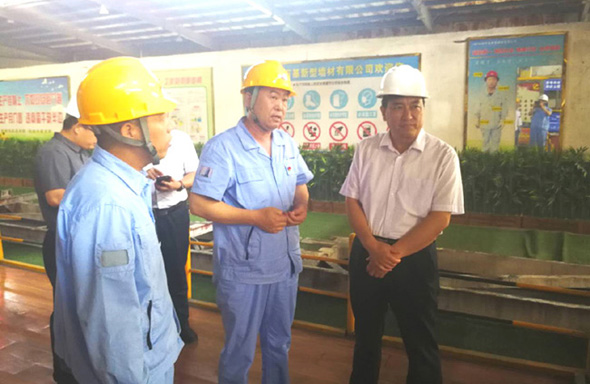 6月22日上午,新安縣縣長郅書安到萬基控股集團(tuán)墻材公司調(diào)研。集團(tuán)公司總經(jīng)理郭峰陪同。