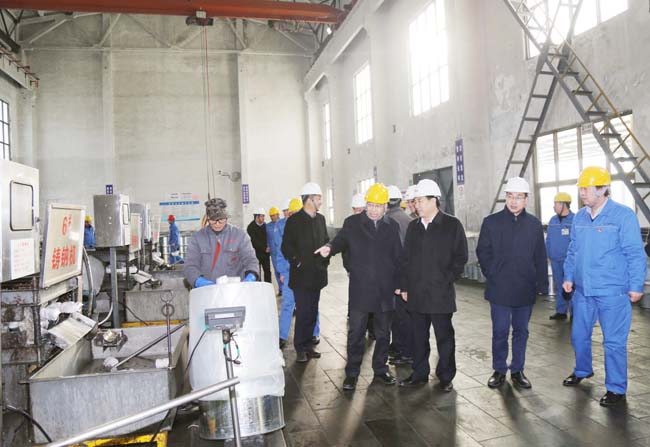 2月13日,新安縣縣長郅書安、副縣長薛萬超、王加祥、楊惠江帶領(lǐng)相關(guān)委局負(fù)責(zé)人到金屬鈉公司檢查安全工作。集團(tuán)公司董事長李躍民、總經(jīng)理郭峰、副總經(jīng)理韓鐵京等陪同。