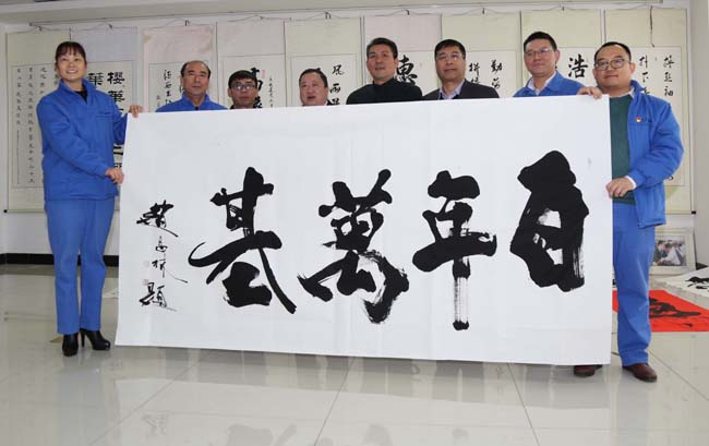 中國書法家協(xié)會會員趙昌林回到了家鄉(xiāng)新安縣,于12月15日到萬基控股集團(tuán)開展書法創(chuàng)作,欣然揮毫潑墨,雄渾瀟灑的書法作品一一躍然紙上。題寫的“百年萬基”四個(gè)遒勁大字熠熠生輝,寓意萬基持續(xù)發(fā)展,永續(xù)萬年基業(yè)。