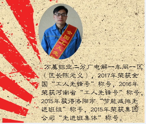 在“五一”國際勞動節(jié)前夕,萬基鋁業(yè)二分廠電解一車間一區(qū)榮獲全國“工人先鋒號”稱號,閆學(xué)寶、耿凱榮獲洛陽市“勞動模范”稱號,鄧花葵、王戰(zhàn)峰榮獲洛陽市“五一勞動獎?wù)隆睒s譽,姬紅莊榮獲新安縣“勞動模范”稱號。