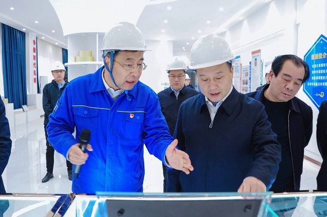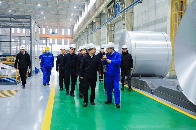 2月8日上午,河南省工信廳黨組書記、廳長李建濤, 省工信廳運行監(jiān)測協(xié)調(diào)局局長洪波一行到萬基鋁加工、鋁鈦合金公司生產(chǎn)車間和2x60萬千瓦機組項目建設(shè)工地調(diào)研。洛陽市人大常委會副主任、新安縣委書記宗國明,萬基控股集團黨委書記、董事長李躍民等陪同。