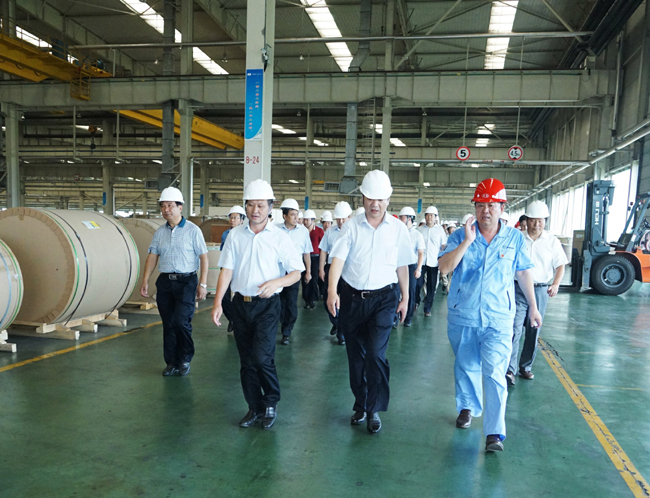 8月18日上午,義馬市市委書記楊彤、市長馮勇、市政協(xié)主席王盧生一行到萬基控股集團考察,新安縣四大班子領導王玉峰、郅書安、秦智琛、郭軒子等和集團公司總經(jīng)理郭峰陪同。