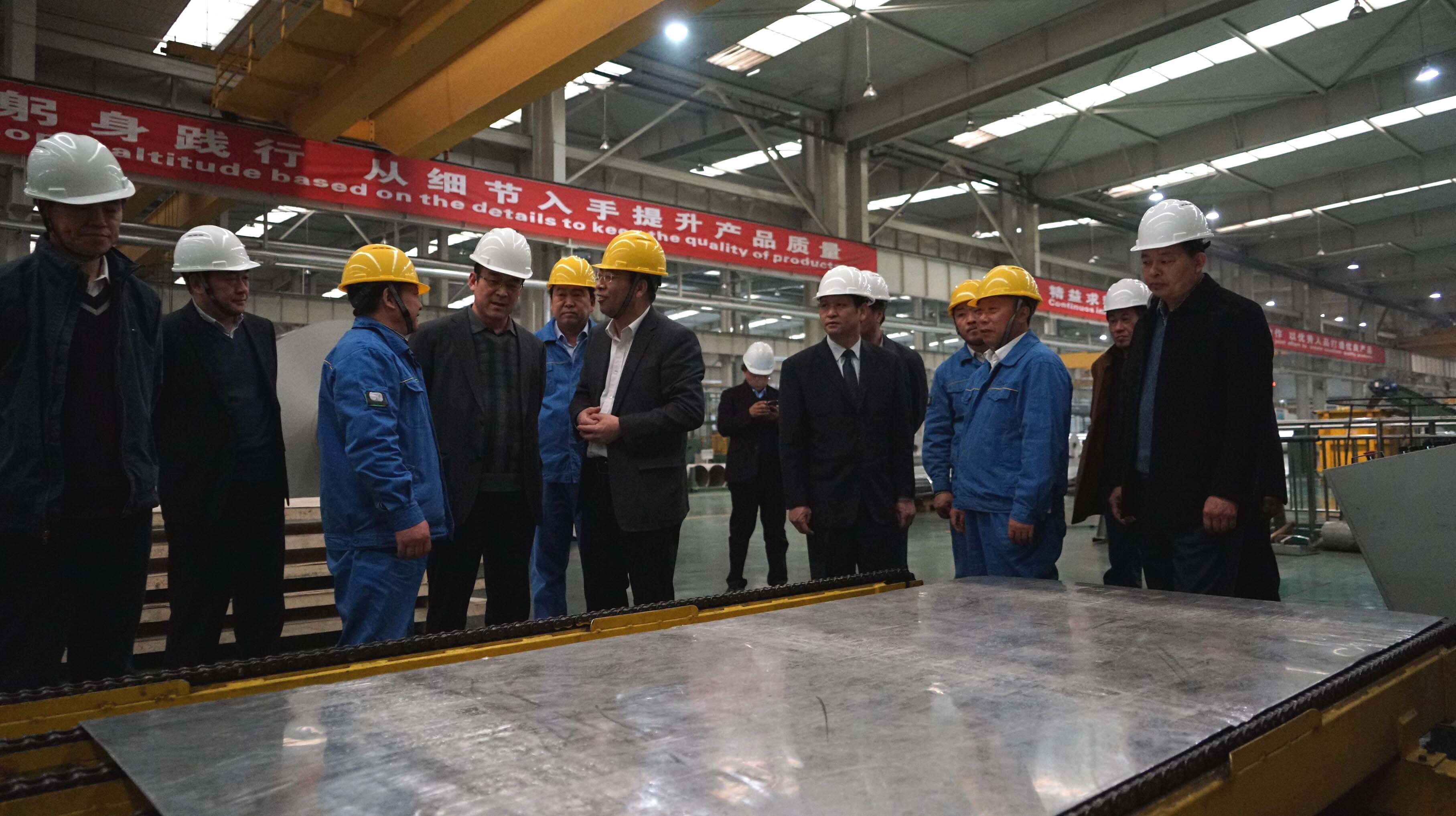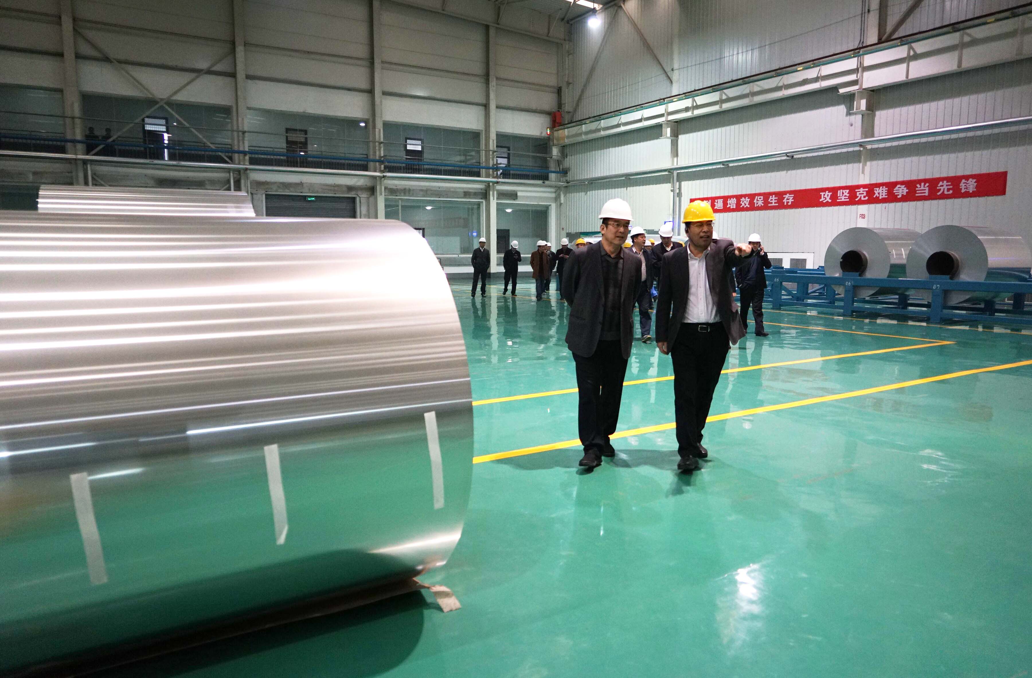 在萬(wàn)基鋁加工公司,董事長(zhǎng)向來(lái)訪領(lǐng)導(dǎo)匯報(bào)集團(tuán)公司生產(chǎn)經(jīng)營(yíng)及環(huán)保治理情況。