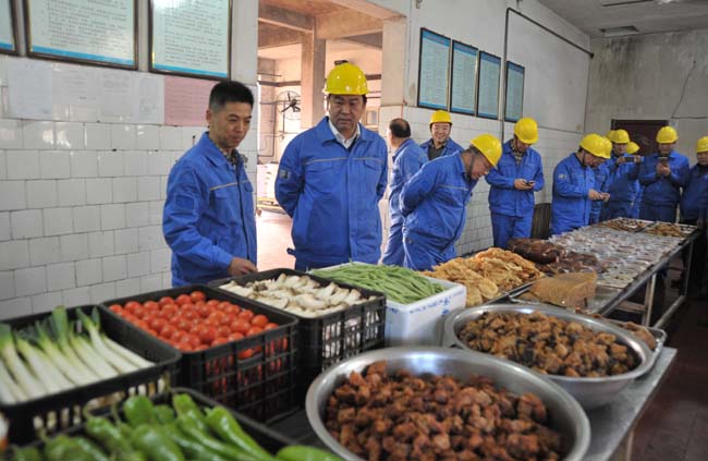在發(fā)電公司餐廳察看飯菜品種。