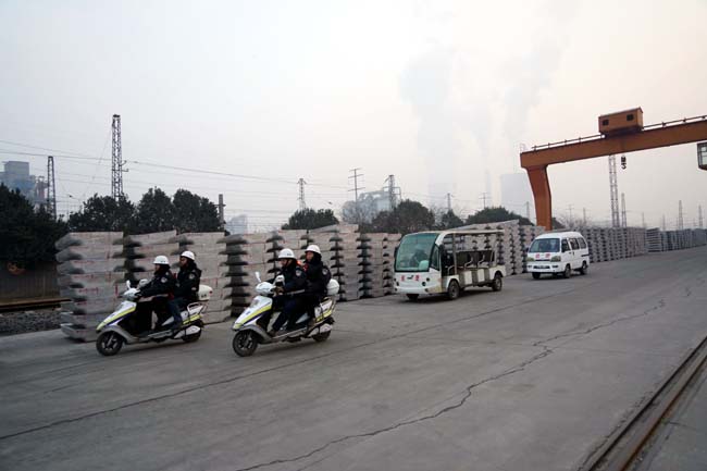 保衛(wèi)部巡邏隊(duì)員在進(jìn)行操練,堅(jiān)決打擊各種危害企業(yè)生產(chǎn)經(jīng)營(yíng)秩序的違法犯罪活動(dòng)。