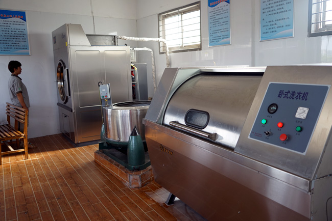 生產(chǎn)一線員工工作服臟得較快,有的在單位換洗,有的穿回家換洗,還有的懶于換洗,個別崗位由于工作環(huán)境較差,上班汗津津,下班臟兮兮,穿著不舒服,感覺不體面、無尊嚴(yán)。在管理提升、對標(biāo)學(xué)習(xí)活動中,集團公司工會受中信重工集團管理經(jīng)驗的啟發(fā),提出了建設(shè)洗衣房、為職工免費洗衣的建議。李躍民董事長在聽取匯報后,當(dāng)即拍板確定洗衣房建設(shè)方案,郭峰總經(jīng)理到現(xiàn)場查看后,確定先在一鋁、二鋁建設(shè)試點,再在發(fā)電、鋁加工等單位推廣。工會、工程管理部、貿(mào)易公司經(jīng)過多次考察論證,從硬件設(shè)施到軟件管理,定方案、出措施,利用鋁業(yè)一公司門崗閑置房進行土建、電氣、供水、供汽改造,經(jīng)過為期一周的緊張施工,洗衣房土建改造和設(shè)備安裝全部結(jié)束,共安裝70公斤滾筒式工業(yè)洗衣機、蒸汽烘干機和甩干機各1臺,配備專用洗衣液和消毒液,對工作服統(tǒng)一編號、分類洗滌、烘干消毒,讓職工穿得干凈體面,工作開心舒心。