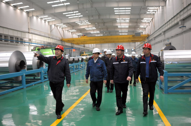 1月26日下午,中信重工機械股份有限公司董事長任沁新等一行6人到我公司實地考察萬基鋁加工冷軋、鋁箔、精整、分切生產(chǎn)線,李躍民董事長、郭峰總經(jīng)理等公司領(lǐng)導(dǎo)陪同考察,并出席了業(yè)務(wù)洽談會。