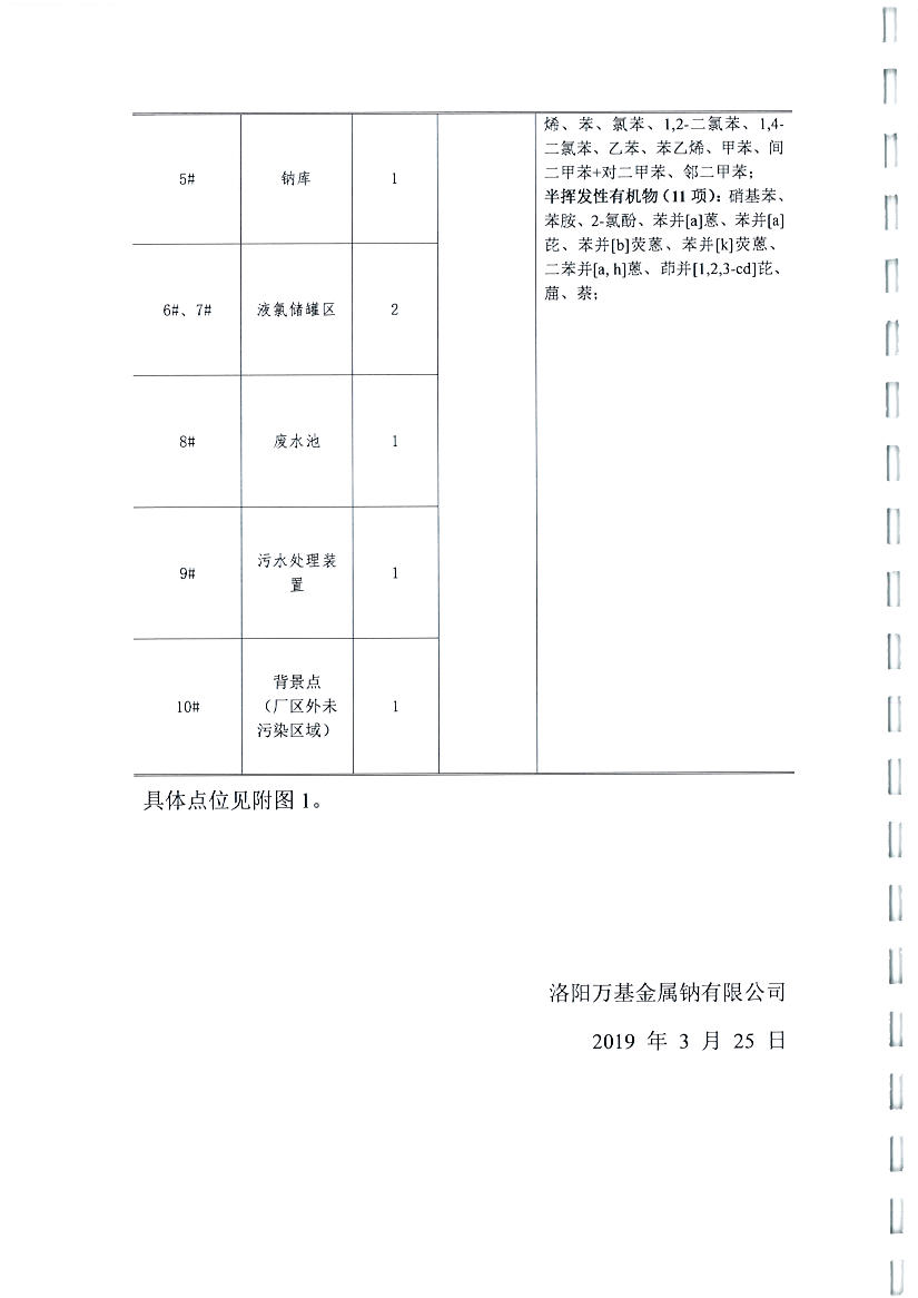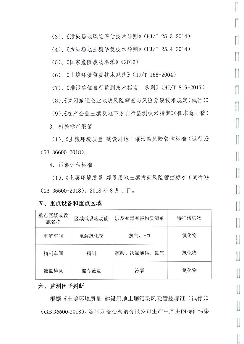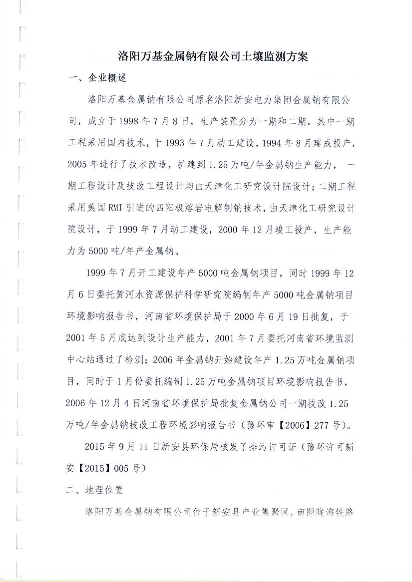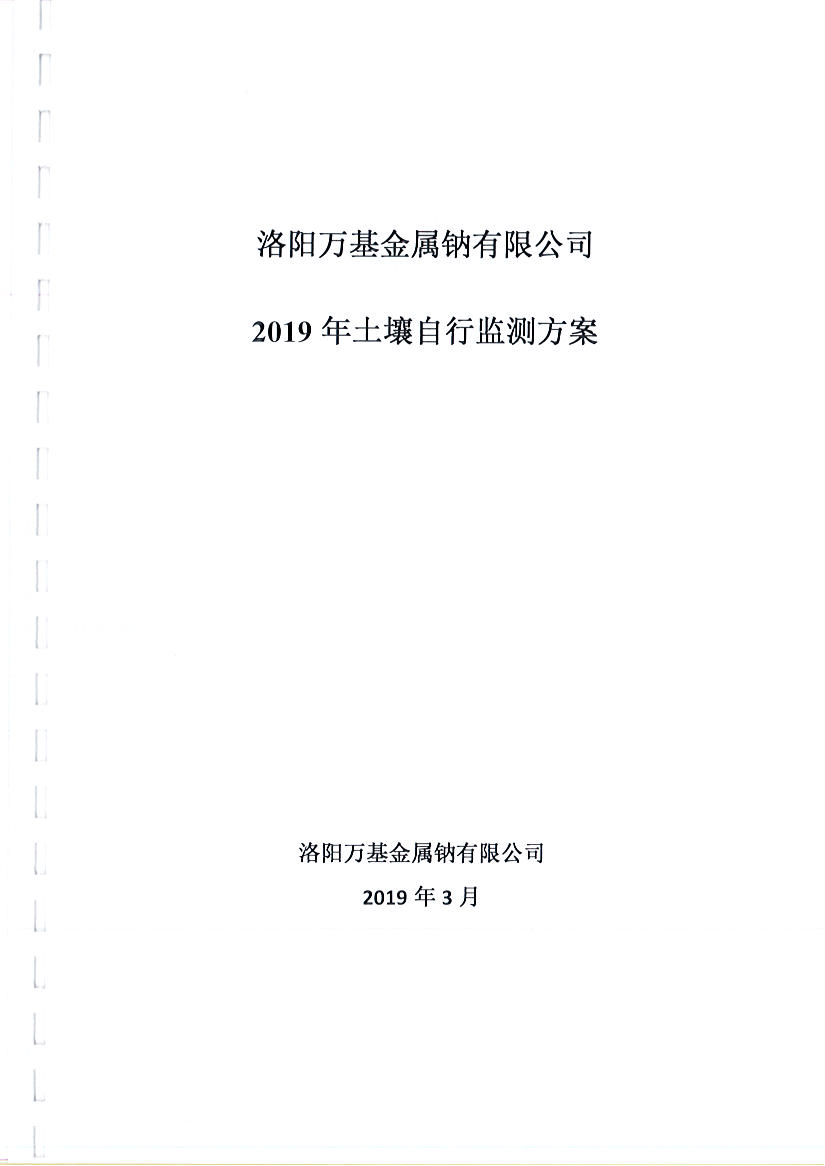 洛陽萬基金屬鈉公司2019土壤自行檢測方案