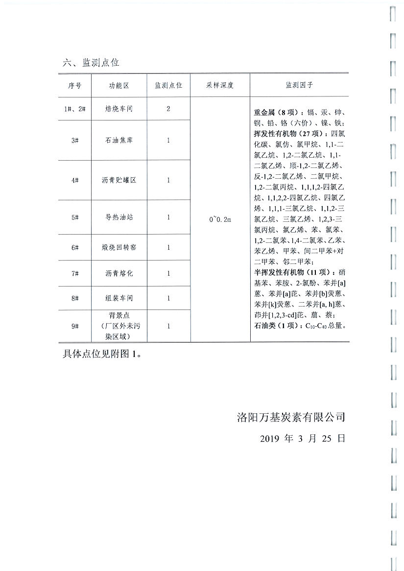 河南萬基炭素有限公司(二分廠)2019土壤自行檢測方案
