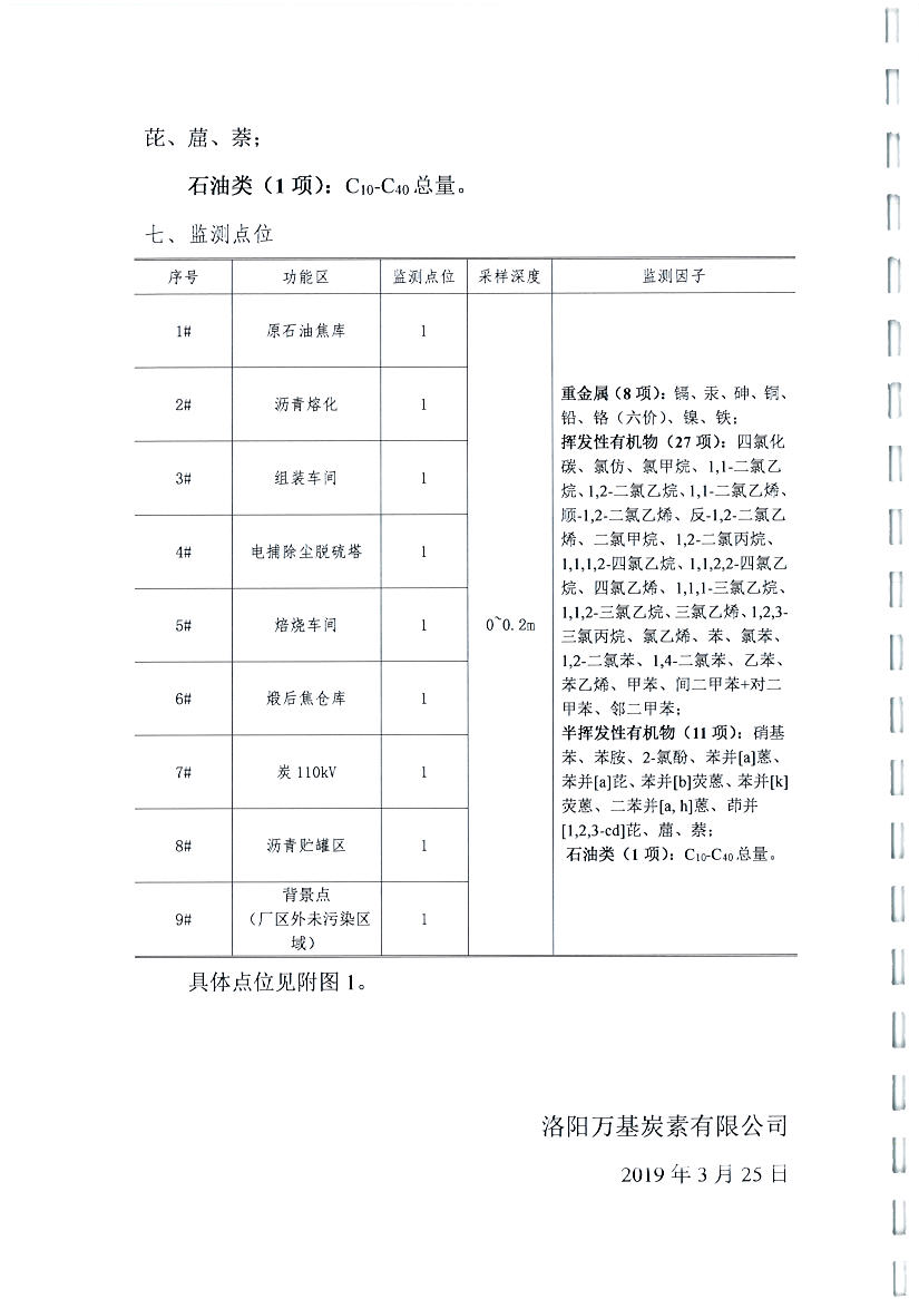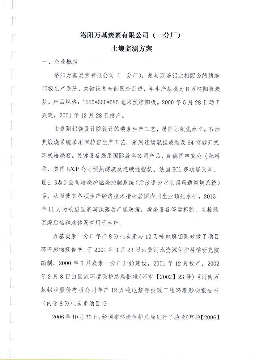 河南萬基炭素有限公司(一分廠)2019土壤自行檢測方案