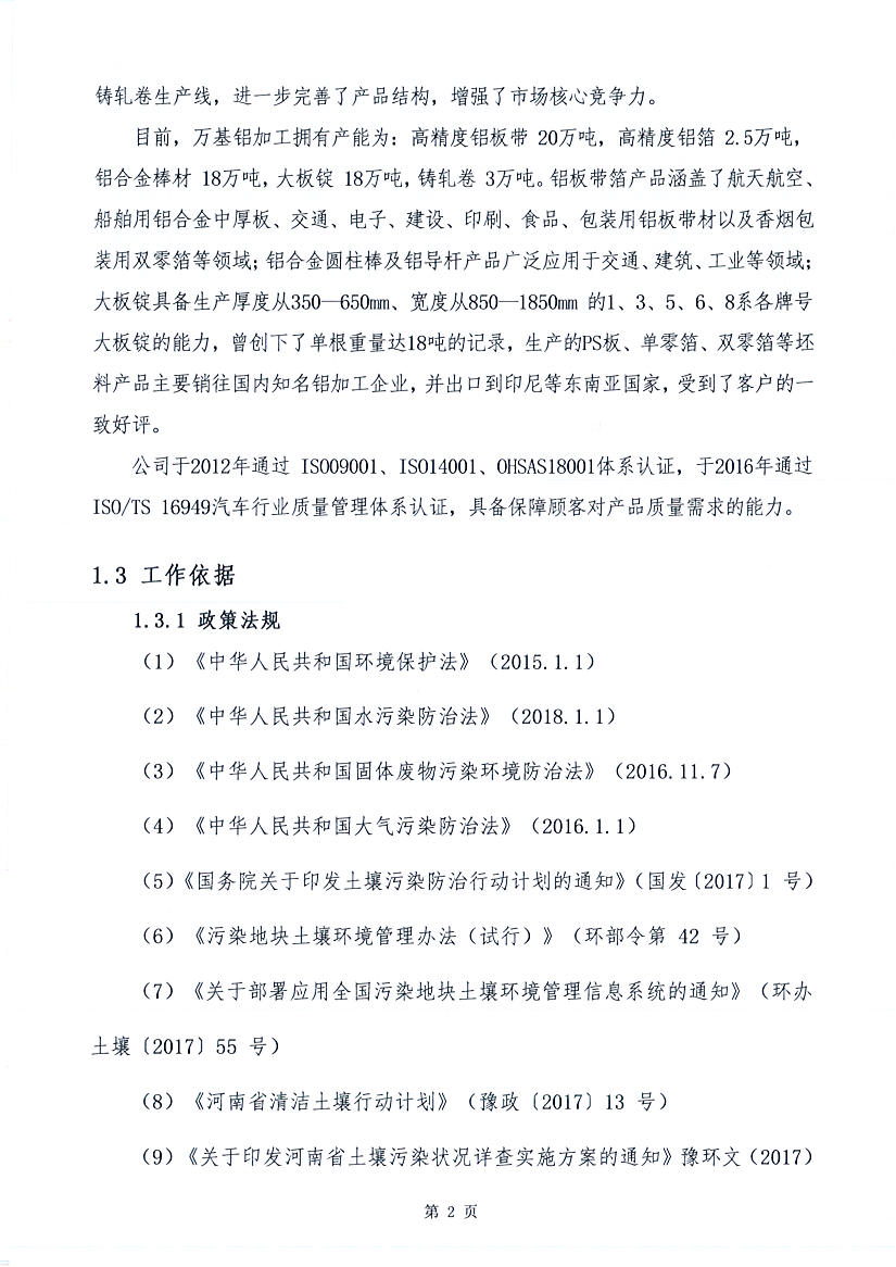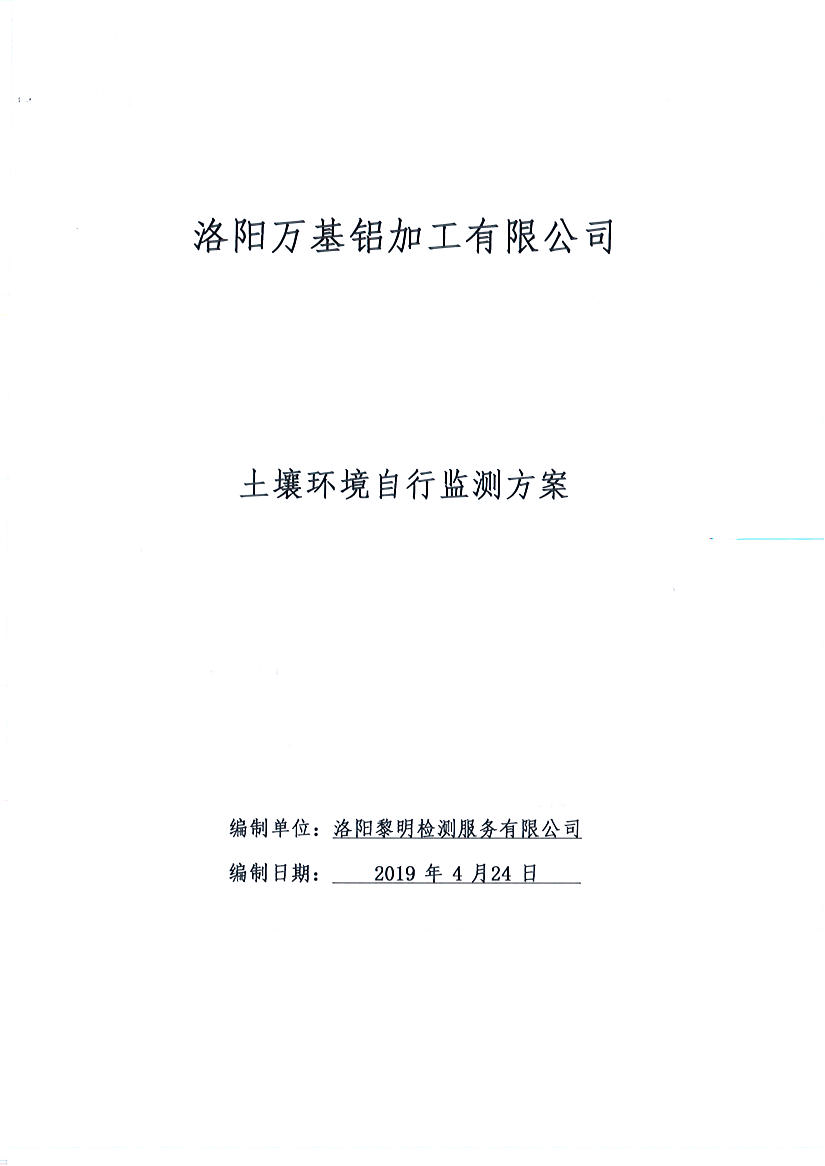洛陽萬基鋁加工有限公司2019年土壤自行檢測方案