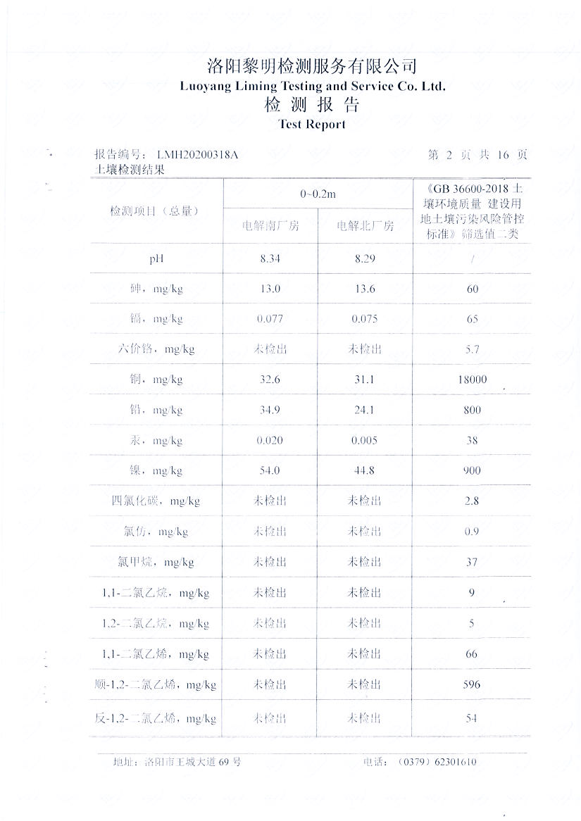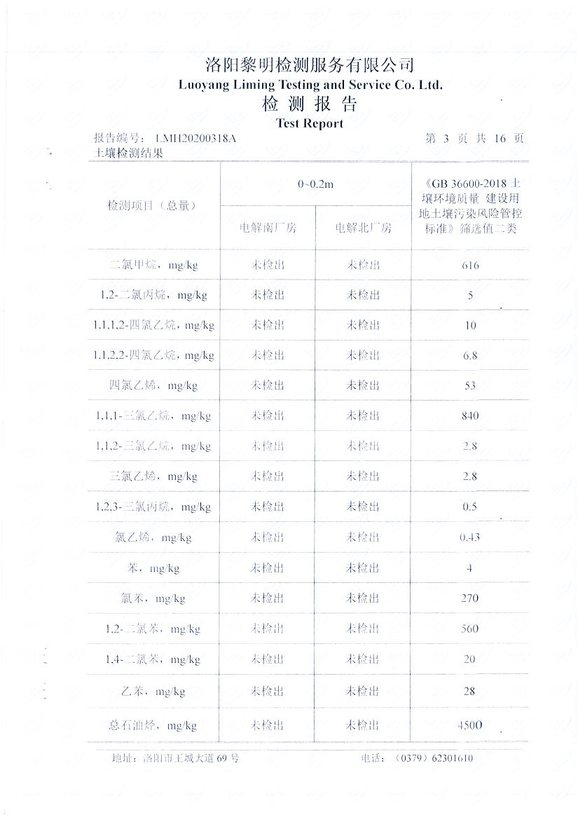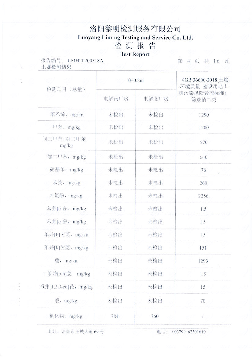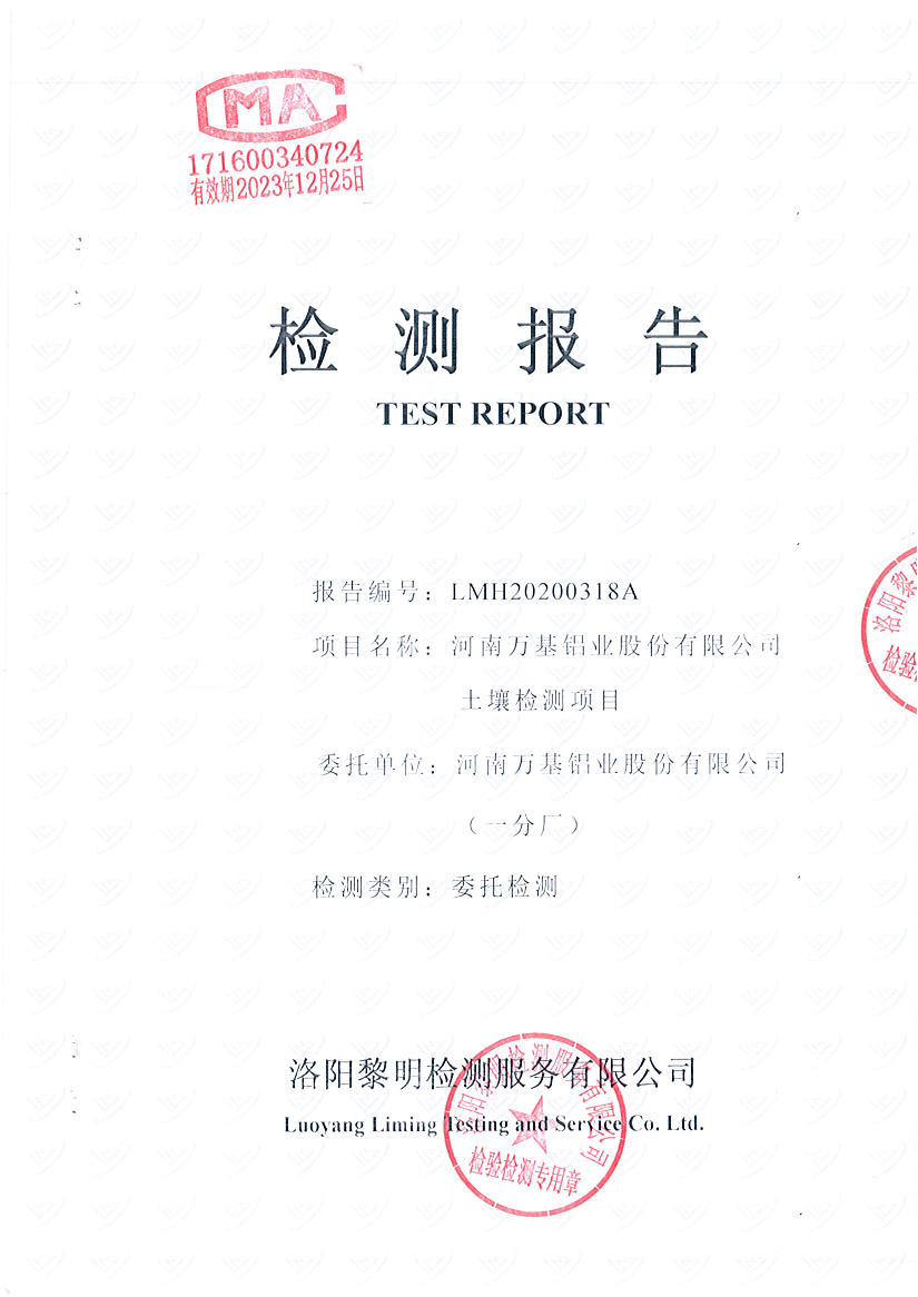 河南萬(wàn)基鋁業(yè)股份有限公司(一分廠)2020土壤自行檢測(cè)報(bào)告