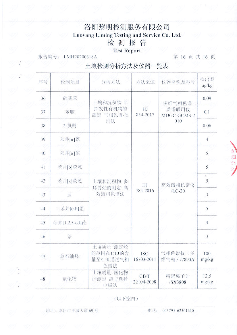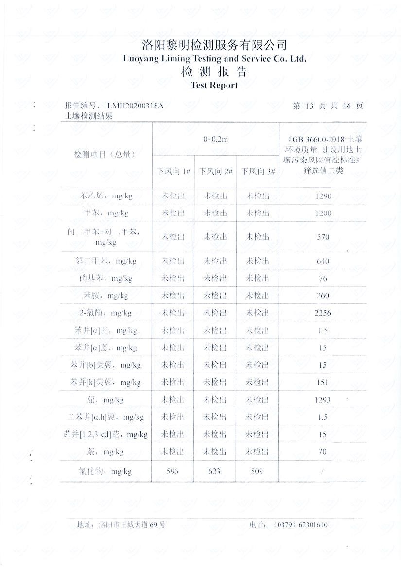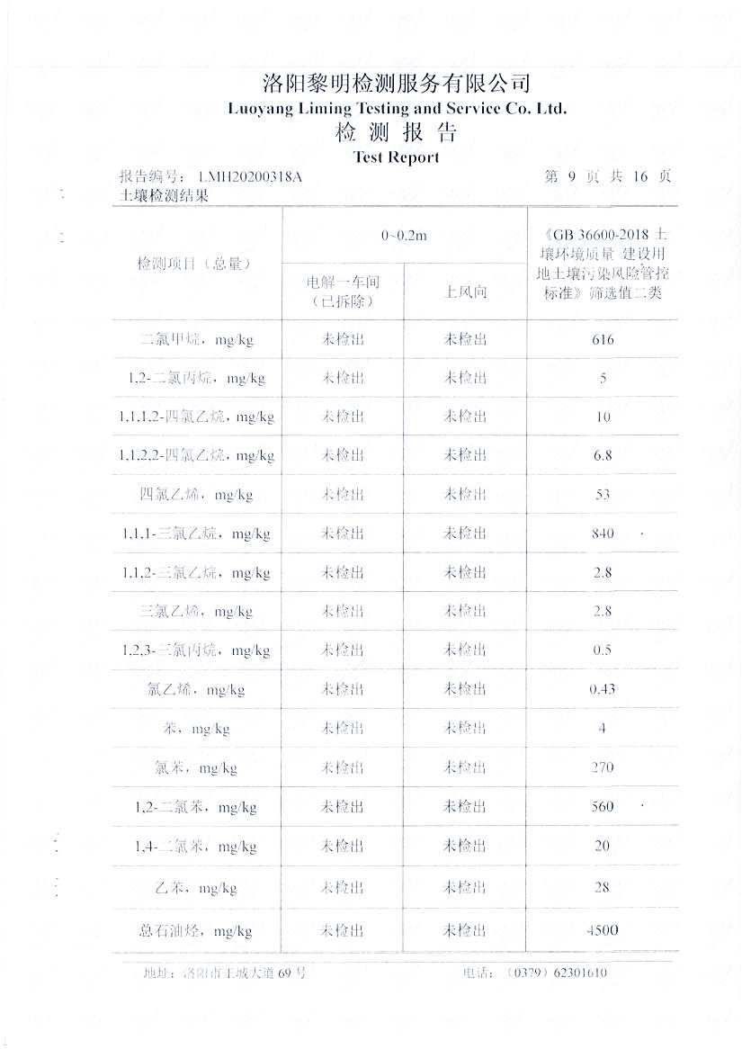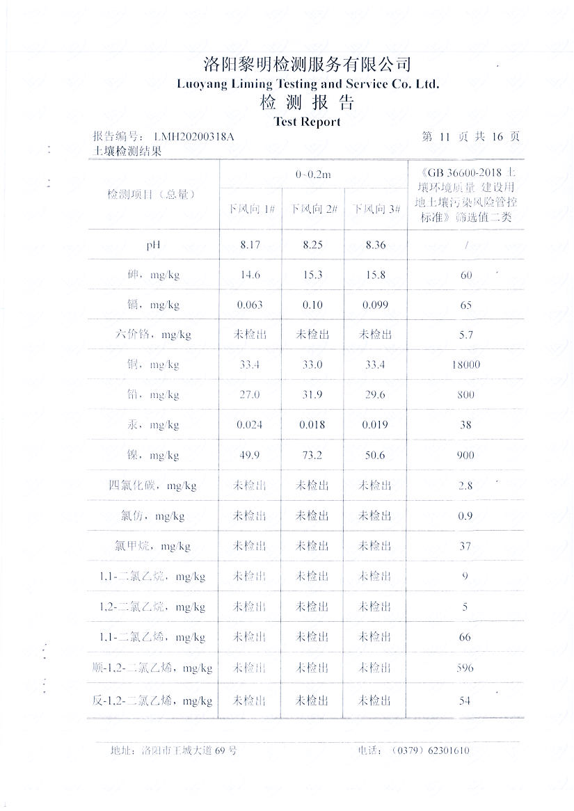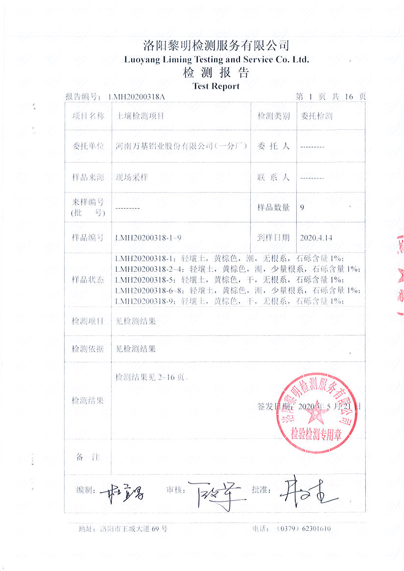 河南萬(wàn)基鋁業(yè)股份有限公司(一分廠)2020土壤自行檢測(cè)報(bào)告
