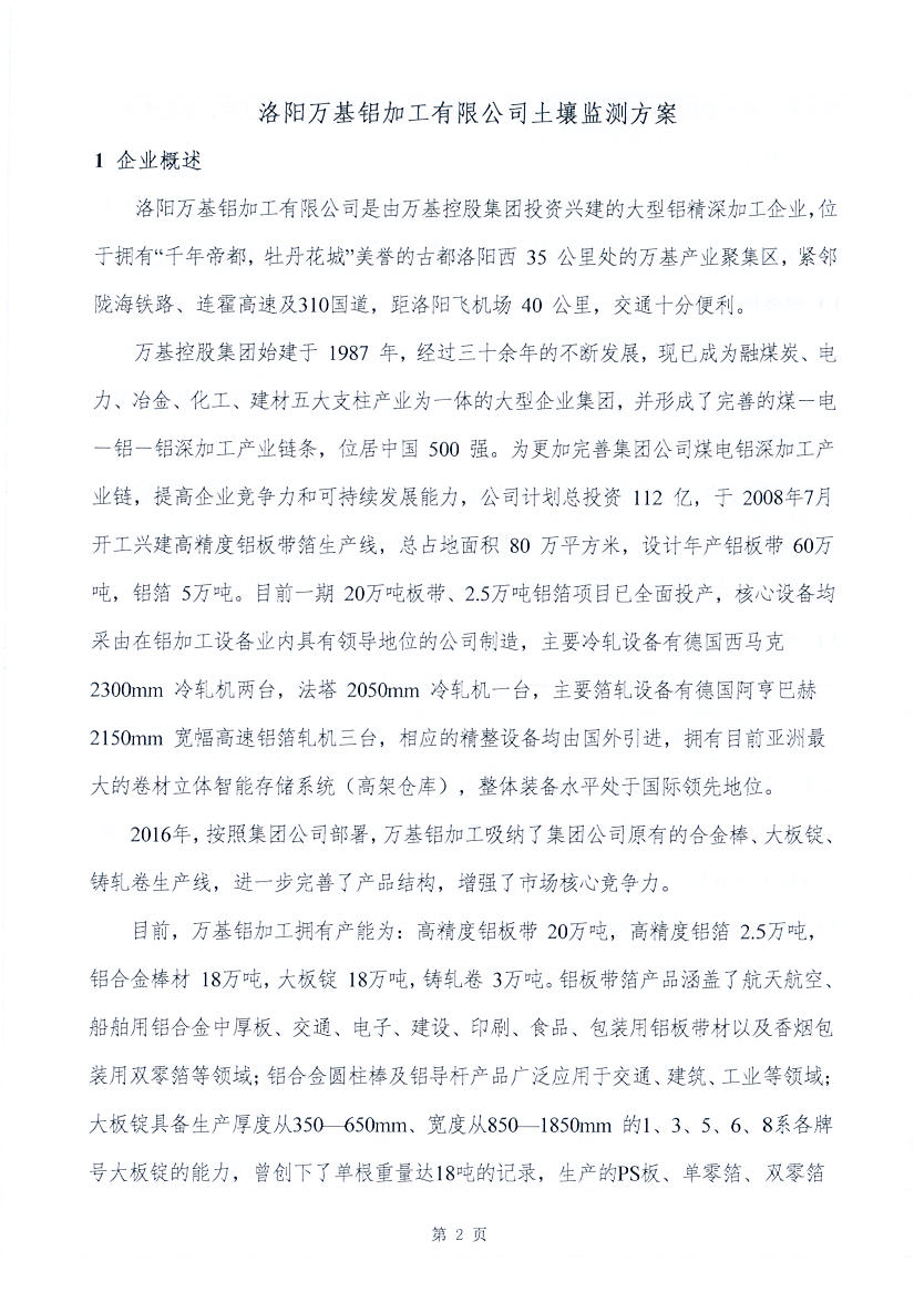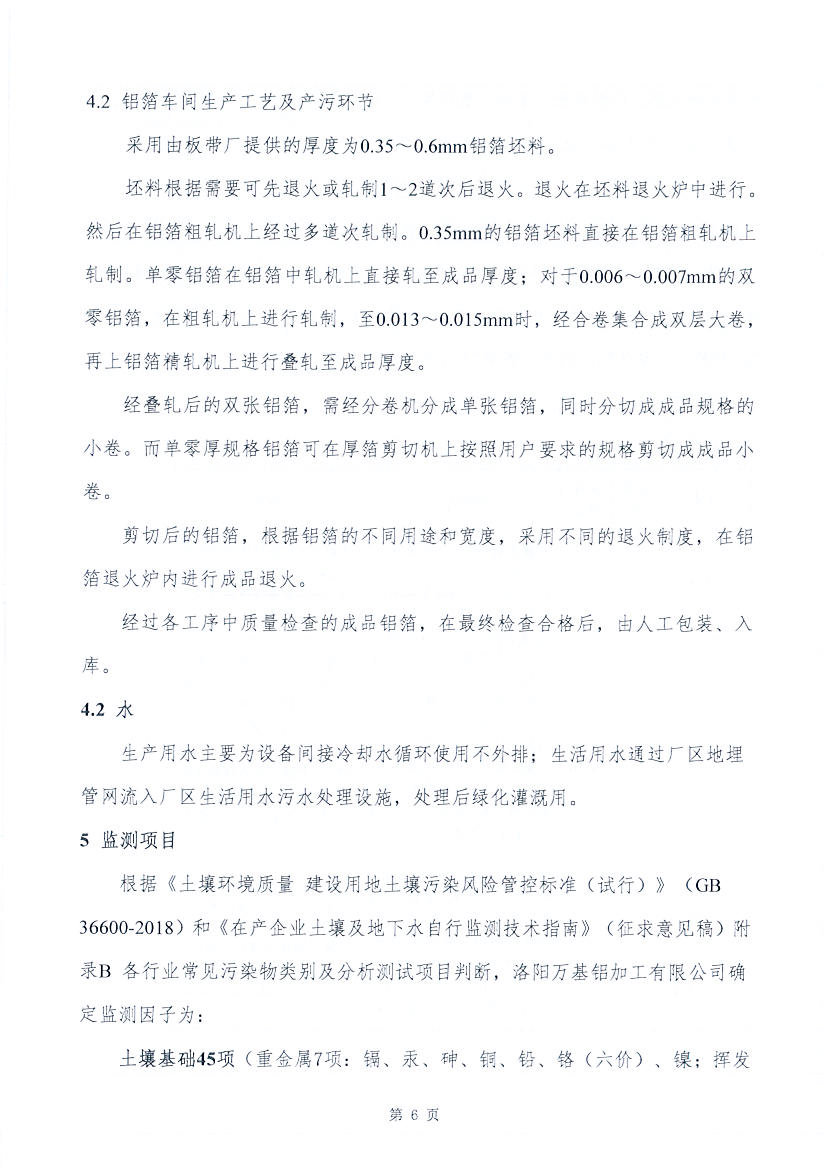 洛陽萬基鋁加工有限公司2020土壤自行監(jiān)測方案
