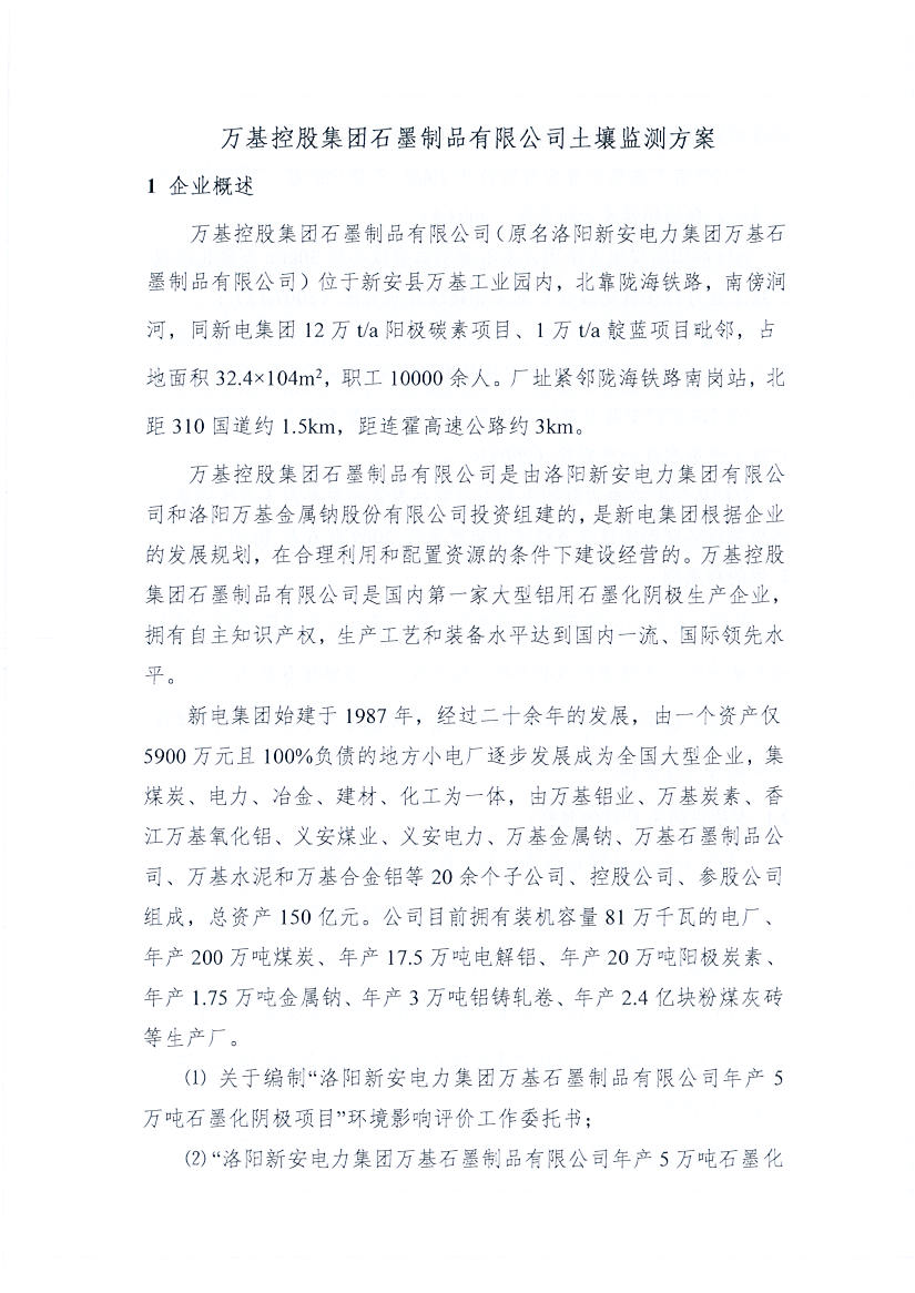 萬基控股集團(tuán)石墨制品有限公司2020土壤自行監(jiān)測方案